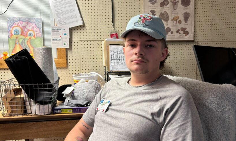 Taylor Bergmann poses for a portrait in his office in Yogi Bear’s Jellystone Park in Kerrville, Texas on July 8, 2025.