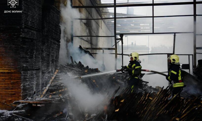 Lutsk Mayor Ihor Polishchuk said that a fire damaged an “industrial site” as well as a garage, in what he called the “most massive Russian attack” on the city since the start of full-scale war.