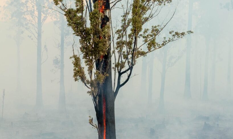 A regeneration burn in a native forest coupe, which blanketed the nearby town of Maydena in dense smoke for several days in 2023. (Supplied: The Tree Projects)