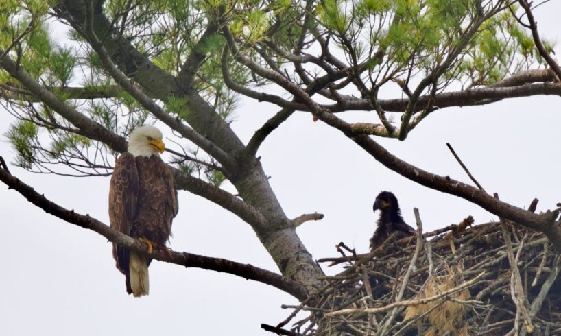 Over the coming weeks, they will practice tough love, spending less time at the nest so the young are forced to explore their surroundings. It’s a proven parenting method, implemented by a couple that has successfully raised dozens of eaglets.