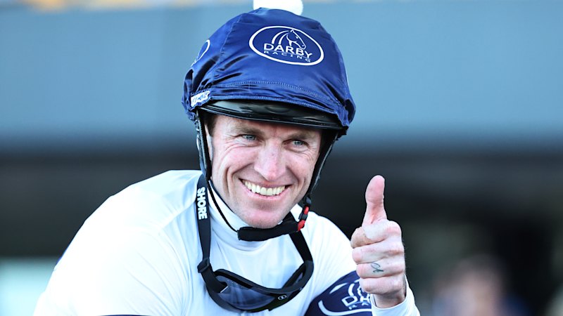 Chad Schofield after riding Without Peer to a win on Saturday.Credit: Getty Images