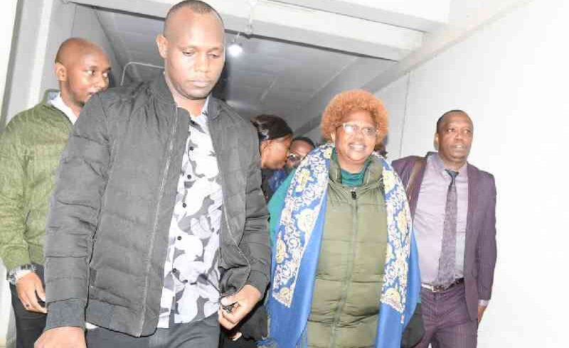 Naivasha MP Jayne Kihara is escorted to the basement cells of Milimani Court in Nairobi on July 18, 2025. [Collins Kweyu, Standard]