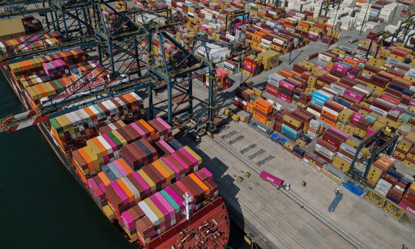 An aerial view picture of the port of Santos, the largest port complex in Latin America and one of the largest in the world, taken on Thursday in Santos, Sao Paulo state, Brazil.