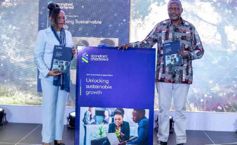 Standard Chartered Kenya Board of Directors Chairperson Kellen Kariuki and Managing Director and CEO Kenya and Africa Kariuki Ngari during the launch of the bank’s Sustainability Progress Report in Nairobi on July 17, 2025. [Wilberforce Okwiri, Standard]
