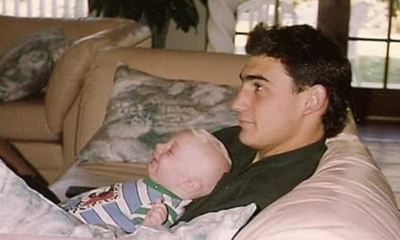 Alek Hermon as a baby with his father, Michael, in 1992.