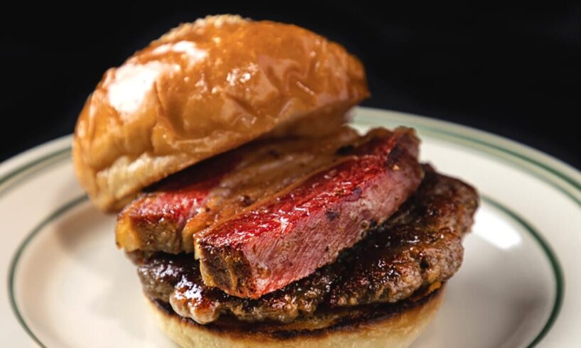 The pastrami is prepared by marinating beef brisket for four days in salt and then heating it until tender, and then smoking it for an additional six days before it is served. The pastrami is thick and has a crispy texture which compliments the juicy patty made with coarsely hashed 90-day-aged premium beef with a subtly sweet and nutty flavor. This amazing burger sets you back 1,800 JPY.