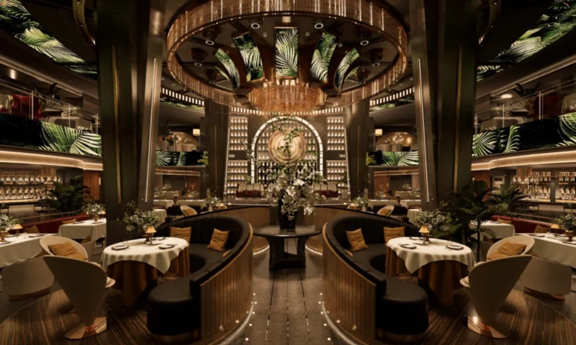 The club’s facilities will include a main salon, mezzanine, private dining rooms and a state-of-the-art golf simulator. ILLUSTRATION: VANTA