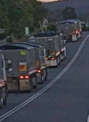 Dashcam footage of trucks seen driving through Paterson. (Supplied: Martins Creek Quarry Action Group)