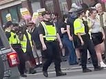 People wrapped in St George’s flag faced down riot police who lined up in a queue on Hemnall Street