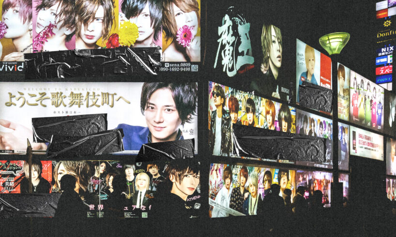 Towering faces of impossibly perfect men stare down from glowing billboards in Kabukicho, the infamous nightlife district in Shinjuku. These are hosts, charismatic young men who work at upscale clubs, pouring drinks and charming clients with practiced flirtation. The billboards all offer the same seductive image: porcelain skin, razor-sharp suits and gazes that promise love — or at least the illusion of it. Beneath their faces, bold proclamations boast of their success: “Annual sales over 100 million yen” or “No.1 requested host.”