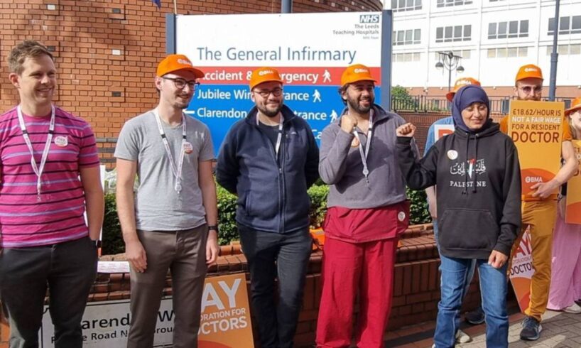 Striking resident doctors on the picket line at LGI, July 25, 2025