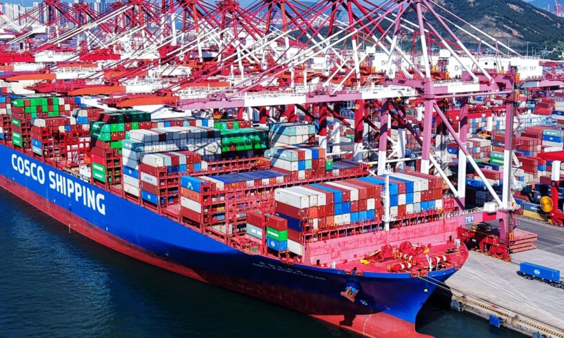 A general view shows shipping containers at the port in Keelung on Aug. 1