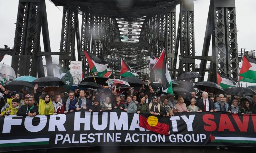 By the official count, more than 100,000 Sydneysiders marched across the city’s most iconic landmark on Sunday protesting the ongoing Israeli bombardment of Gaza and calling for action on what the United Nations has described as a “worst-case scenario of famine” in the region.