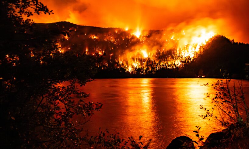 The gunshot-like noise of trees exploding, followed by the earth-shaking crash as they fall. The thunderous clap as overheated boulders split, then roll down the hillside, splashing into the lake.
