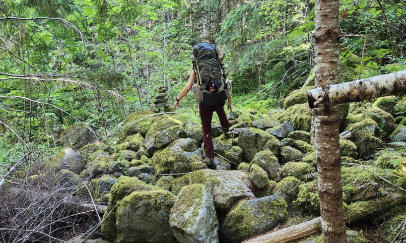 For the first few kilometres, we followed a graded logging road where a young alder forest is reclaiming nature. Where the road ended, the landscape changed abruptly. Sunlight was swallowed by the canopy above and the path narrowed, hugging the steep mountainside through an ancient forest of towering red cedar, Douglas fir and hemlock. Below us, Price Creek roared, fed by melting snow.
