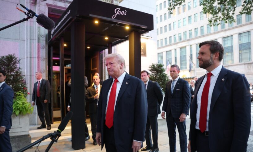 Trump has in recent days touted a complete drop in crime in the nation’s capital, which data shows is down (compared to last August) but not gone altogether. He made similar claims of success outside the restaurant, flanked by Vice President Vance, Defense Secretary Pete Hegseth and Secretary of State Marco Rubio.
