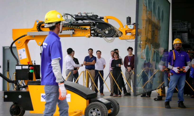 At Loyang window factory, robots help workers carry huge glass panes and avoid injury