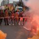 Hamas terrorists accompanied by children celebrate in the streets of Gaza. Photo: Reuters Reuters