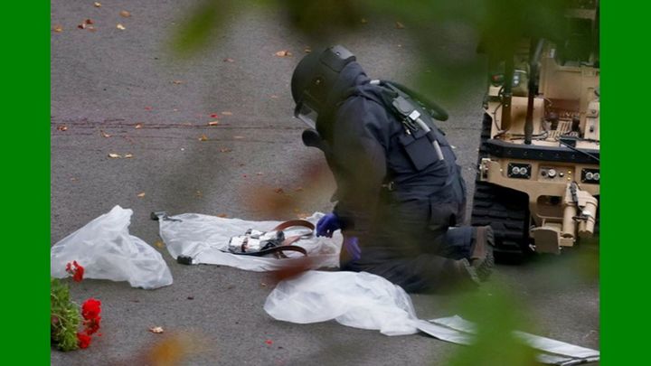 A dramatic picture of Al-Shamie shows the moment he stood outside the synagogue with unidentified objects strapped to his waist, initially thought to be an explosive device which police later said was not viable.