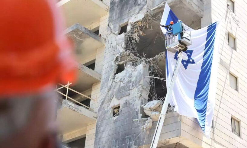 On June 16, the building in the photo – a residential tower in Petah Tikva – suffered a direct hit from an Iranian ballistic missile, causing loss of life. The rehabilitation work, during which a huge Israeli flag was unfurled on the building, nevertheless sparked a glimmer of hope.