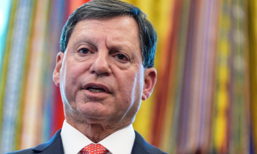 Social Security Commissioner Frank Bisignano speaks during an event in the Oval Office to mark the 90th anniversary of the Social Security Act, Aug. 14, 2025, in Washington.
