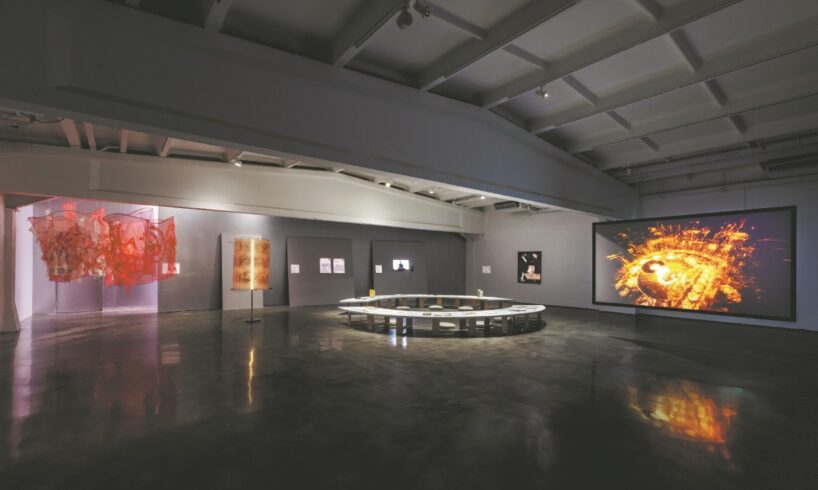 Artist Yun Feng’s artwork “Heading Toward Where The Light Is” places moth sculptures throughout the exhibition space. “Hospice doctors tell patients to ‘walk toward the light’, which made me think of the image of moths flying into a flame — both the end of life and a final yearning,” he said.
