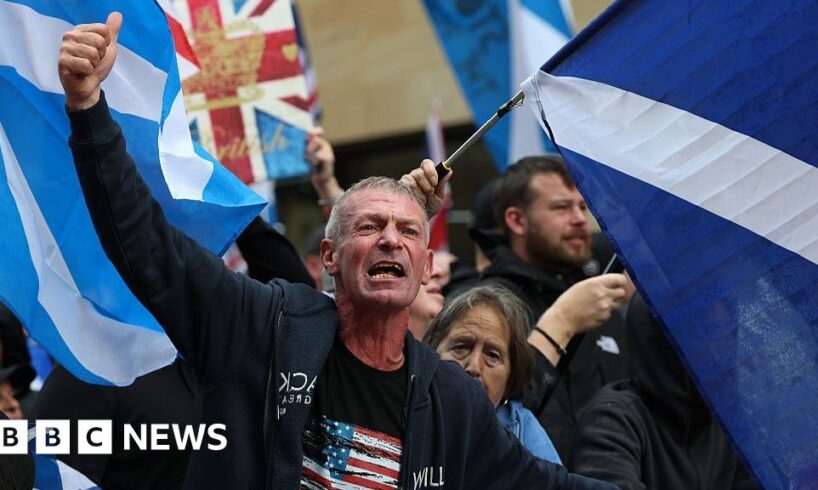 At the protest in Glasgow where Steven Rennie spoke about the saltire, there were chants, calls and placards in support of right-wing American influencer Charlie Kirk, who had been shot dead days earlier.