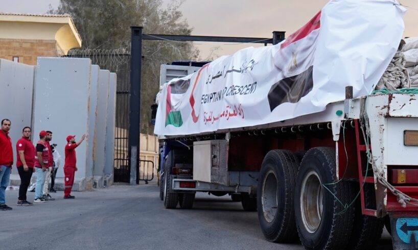 Associated Press footage showed dozens of trucks crossing the Egyptian side of the Rafah crossing. The Egyptian Red Crescent said the trucks include medical supplies, tents, blankets, food and fuel.