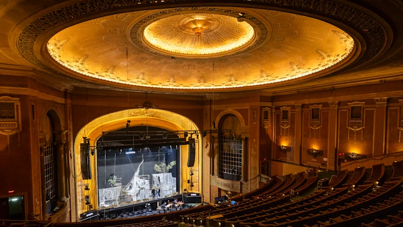 The venue’s history is in full view backstage. Signs commemorate shows by everyone from The Rolling Stones to Dua Lipa. A moth-eaten wage adjustment guide, listing stagehand pay rates from 1959, remains stuck to the wall. Next to that, ancient circuit breakers, some of which are still in use. The fly rails, by which sets, curtains and the venue’s old cinema screen are raised and lowered onto the stage, are still run by a counterweighted rope pulley system (most contemporary theatres have that automated).