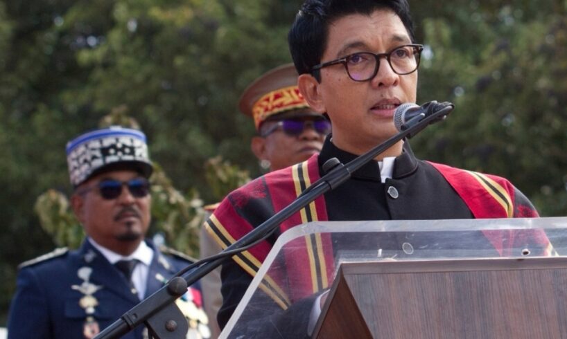 President Andry Rajoelina addresses a state ceremony, Sept. 2, 2025, in Antananarivo, Madagascar.
