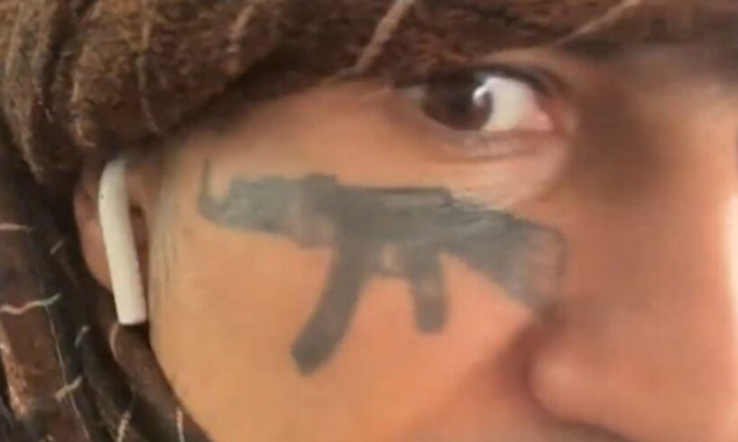 While Khan said “pop, pop, pop” he made “gun gestures with his hand”. He also headbutted the camera during the video and pointed to an AK-47 tattoo on his face to “emphasise he wasn’t joking”, jurors were told.