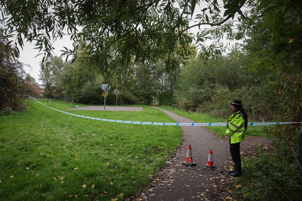 A huge chunk of a park near the tram stop was cordoned off by police(Image: Joseph Raynor/Reach PLC)