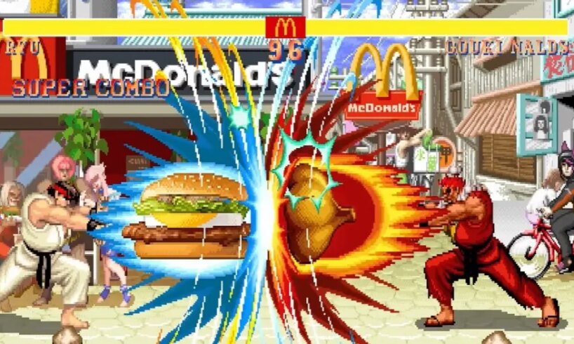 If you’re wondering why Ryu’s opponent in the above video, the character known in the West as Akuma, is called “Gouki Nalds,” it’s because Akuma’s original name in Japanese Street Fighter games is Gouki (pronounced with a long O vowel sound), which Capcom changed for overseas markets, likely to avoid a short U mispronunciation that would make it sound like an anti-Asian slur. The “Nalds” is simply sticking the end of “McDonald’s” onto Gouki’s name.