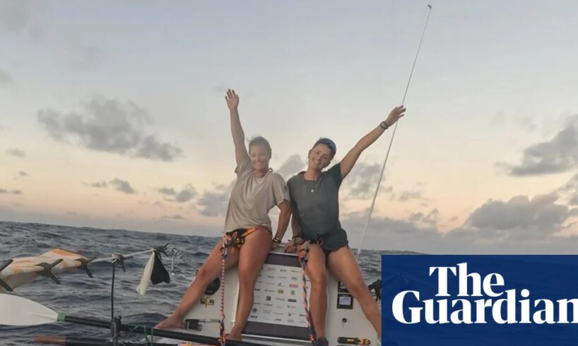 Jess Rowe (left) and Miriam Payne, who are rowing across the Pacific Ocean from Peru to Australia on board their boat Velocity. Photograph: Seas The Day Ocean Rowing/https://www.facebook.com/seasthedayoceanrowing/