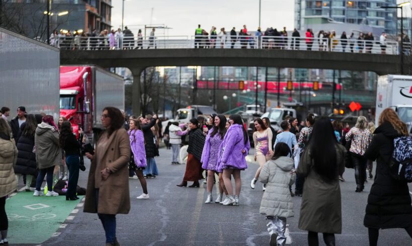 Concertgoers pose ahead of a Taylor Swift concert during the Eras Tour on Dec. 6, 2024, in Vancouver.Lindsey Wasson/The Canadian Press