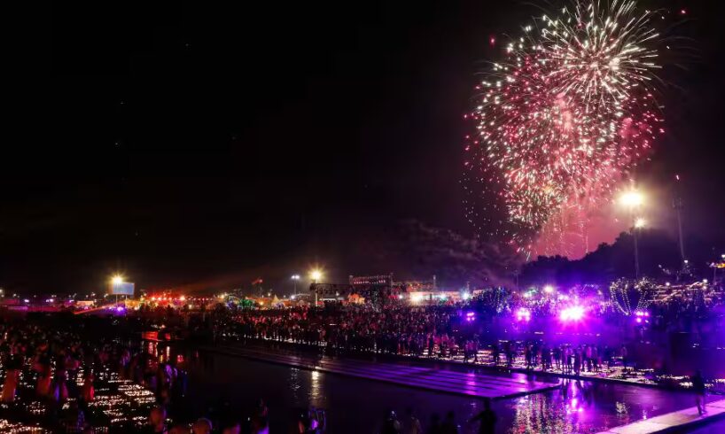 First Record: At Ram Ki Paidi, a staggering 26,17,215 diyas were lit simultaneously in perfect synchronization. Drone technology counted every single lamp as the ghats glowed like heaven itself had descended on Earth. A mesmerizing laser light show illuminated Ram Ki Paidi, while 1,100 drones created a celestial spectacle that painted the Ayodhya sky with divine artistry.
