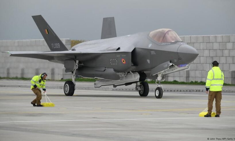 The jets are intended to replace Germany’s 85 aging Tornado fighters and like these could carry US nuclear bombs stored in Germany if a conflict broke out.