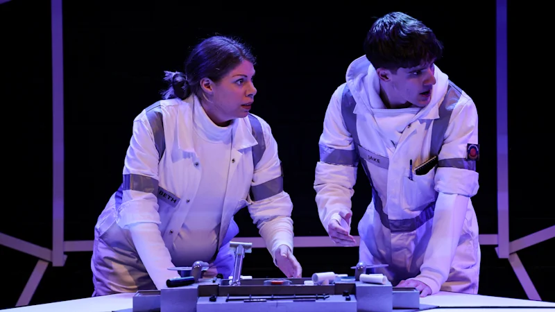 Lo-fi but evocative design elements – Silvia Weijia Shao’s versatile set, Tomas Gerasimidis’ highly differentiated lighting, Lili Wymond’s glitchy sound, Ami Salinas’ static-filled projections – create three totally distinct sensory panels for the actors to play within.