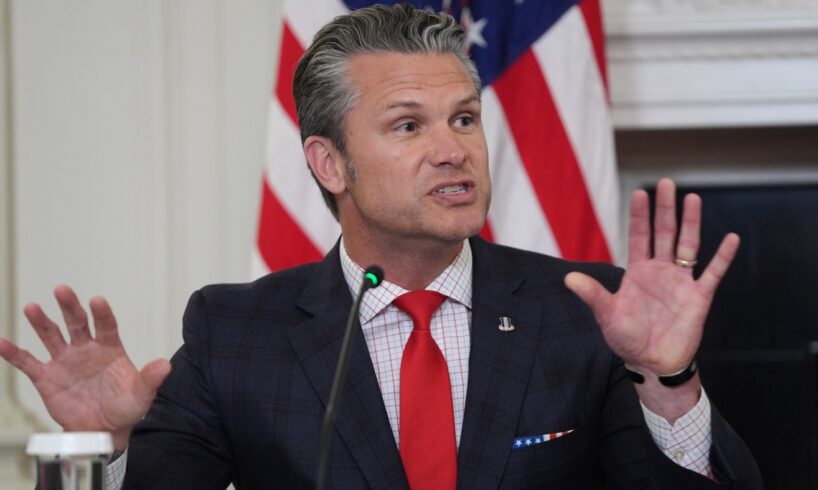 Defense Secretary Pete Hegseth speaks during a roundtable on criminal cartels with President Trump in the State Dining Room of the White House on Thursday.