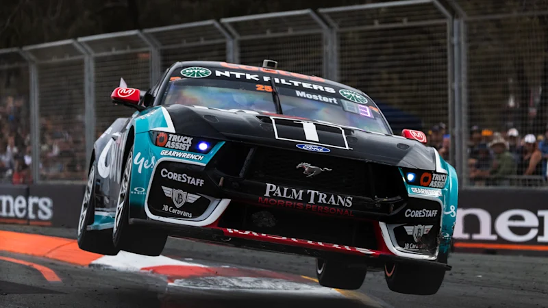 Chaz Mostert’s Ford Mustang on the way to his win on the Gold Coast.Credit: Getty Images