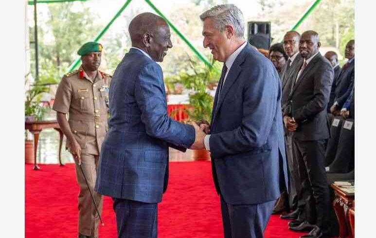 President William Ruto and the United Nations High Commissioner for Refugees Mr Filippo Grandi during the launch of the Shirika Plan at State House, Nairobi. [ELLY OKWARE/PCS]