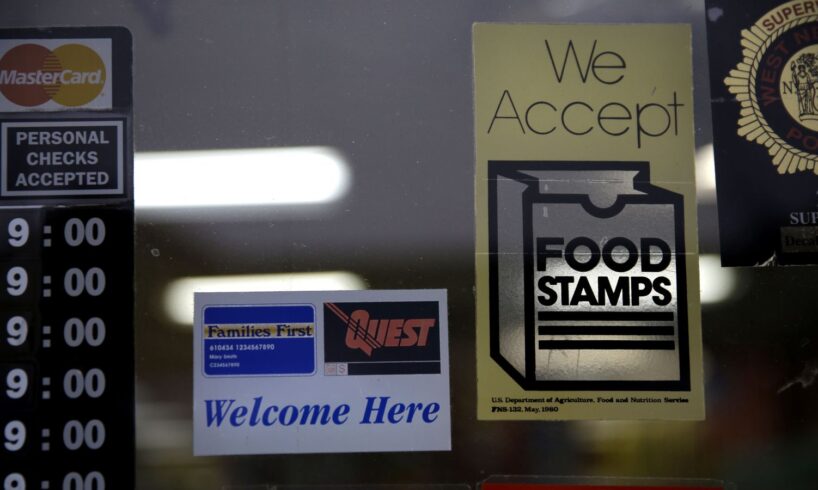 A supermarket displays stickers indicating they accept food stamps in West New York, New Jersey., Monday, Jan. 12, 2015. [AP Photo/Seth Wenig]