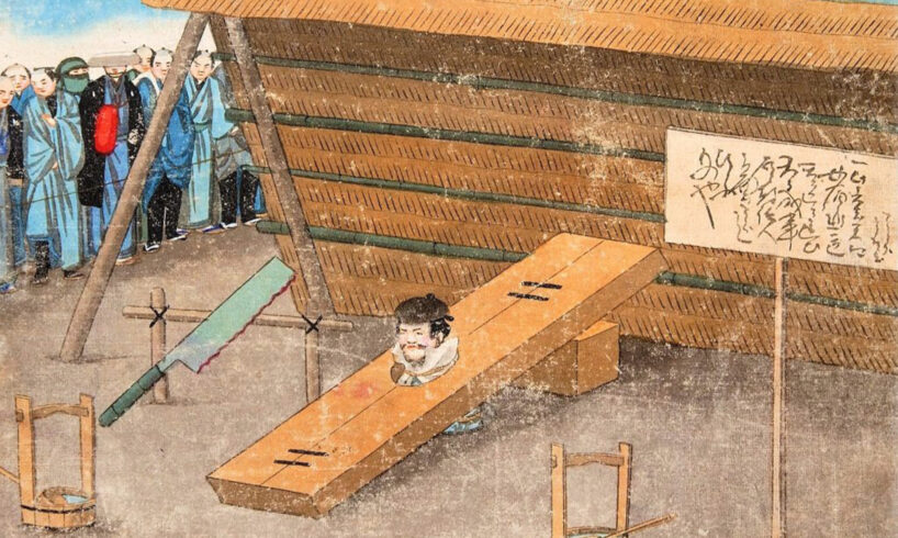“Nokogiribiki” simply means “sawing,” and as an execution method, it was exactly as advertised: killing a person with a saw. The practice might have originated in the Heian period (794–1185), but it really took off in the 1500s. From the very beginning, it was a public spectacle, where someone convicted of the worst crimes imaginable (like killing their master) was literally… “made less” by executioners with bamboo or metal saws. In the most extreme cases, the process could last days.