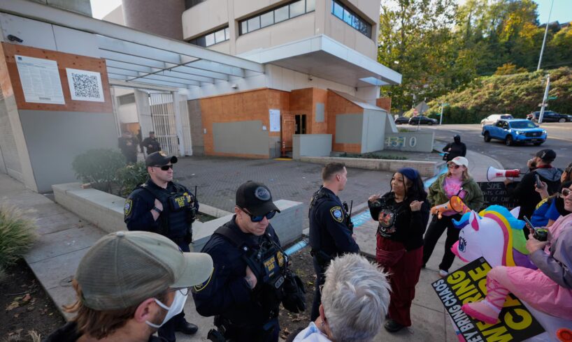 Portland’s ICE building outside downtown has been the site of nightly protests that peaked in June when police declared one demonstration a riot. Smaller clashes have also occurred since then, and federal officers have fired tear gas to clear crowds, which at times have included counterprotesters and live-streamers.
