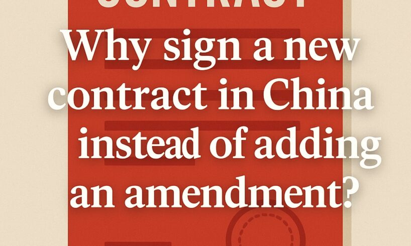When working with Chinese manufacturers or other counterparties, foreign companies often ask our China business lawyers whether they can amend an existing contract instead of signing a new one. On paper, an amendment sounds efficient. In practice, it usually creates legal and operational risk in China.