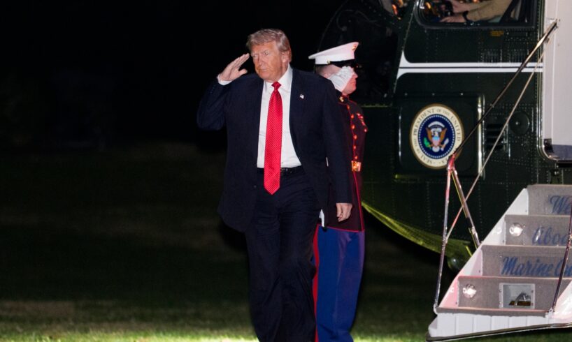 President Trump salutes a Marine as he arrives at the White House on Nov. 2 in Washington, D.C. Trump spent the weekend at his Mar-a-Lago club in Palm Beach, Florida.