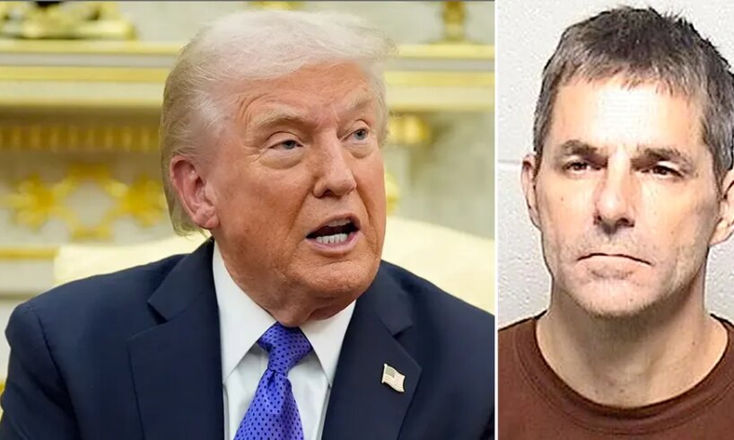 Trent Schneider, 57, of Winthrop Harbor, Illinois, was arrested Monday at his home after federal agents alleged he posted a series of profanity-laced social media videos calling for President Donald Trump’s execution. Schneider pictured in mugshot from previous incident. (Lake County Sheriff’s Office via FOX 32 in Chicago)