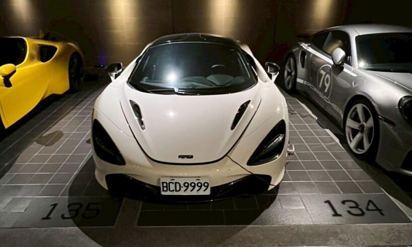 In this photo released by the Ministry of Justice Investigation Bureau, luxury sport vehicles are parked at one of the seized properties which belongs to the suspected head of a criminal scamming syndicate, in Taipei, Taiwan, Tuesday, Nov. 4, 2025.