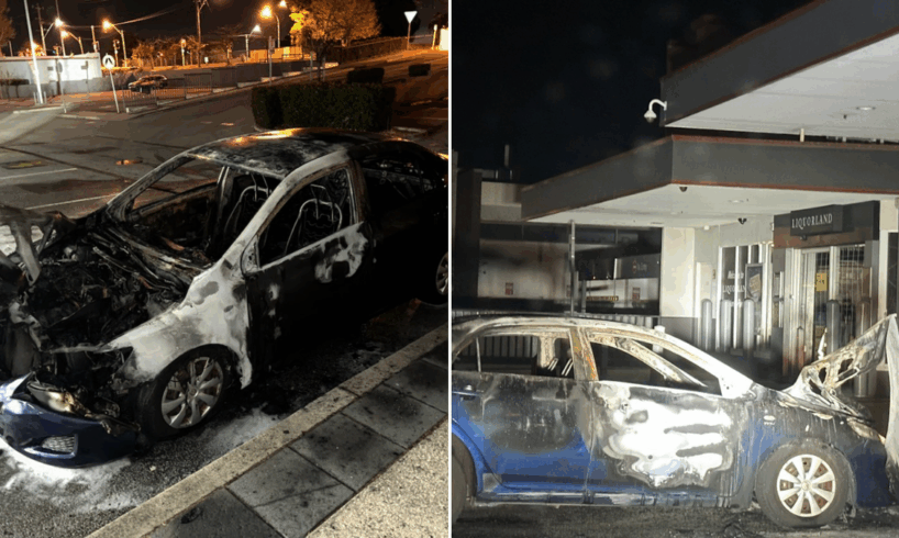 Camera IconThe car was torched in a shopping centre carpark. Credit: Aliya Pi