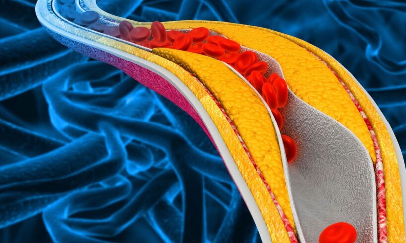 Having high cholesterol in the blood can lead to a buildup called “plaque” on the walls of the arteries, raising the risk of cardiovascular disease.